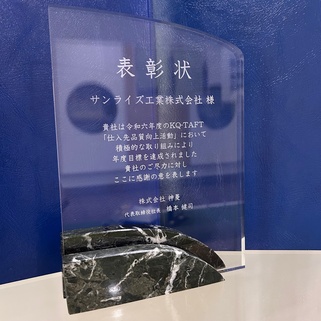 流出不具合0件の成績を収め感謝状を受領いたしました。